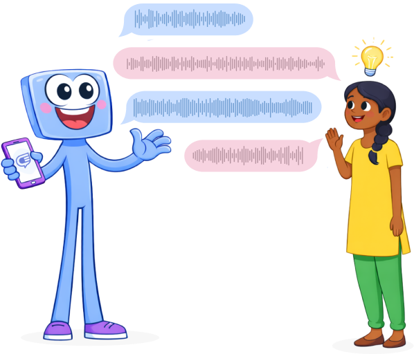 Each student engages in personalized voice dialogues with Konvo, explaining concepts, responding to questions, and receiving individualized feedback in their native language.